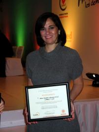La Lic. Samia Basila subió al estrado junto a los representantes de otras organizaciones a recibir este reconocimiento que se obtiene de aquellos elementos que garantizan que la institución se maneja de manera transparente.